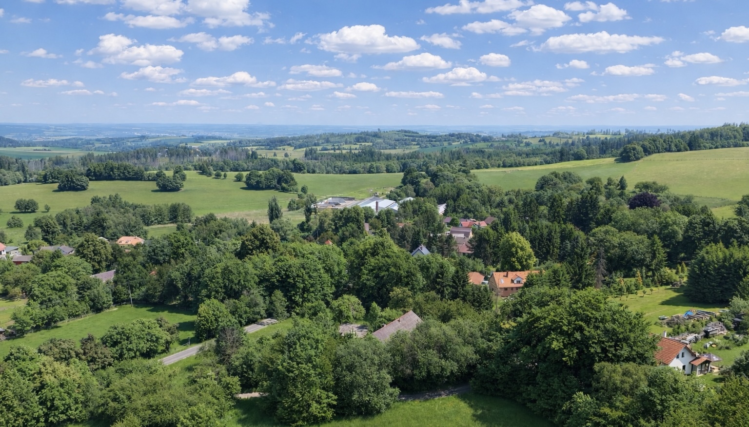 Okolí je tiché a příjemné, obklopené přírodou. Zároveň ale neztrácíte kontakt s městem, do Jihlavy se dostanete zhruba za 15 minut, do Humpolce přibližně za 17 minut autem.